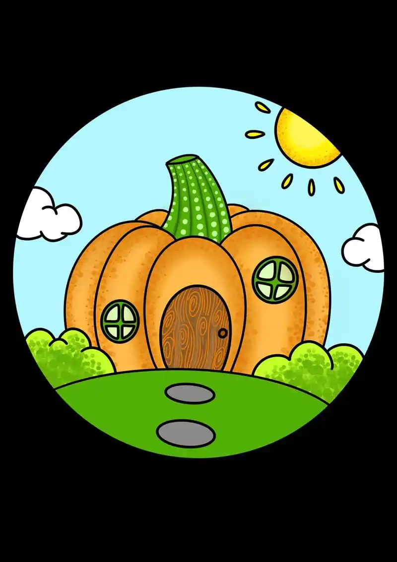 彩色线描南瓜屋儿童创意美术