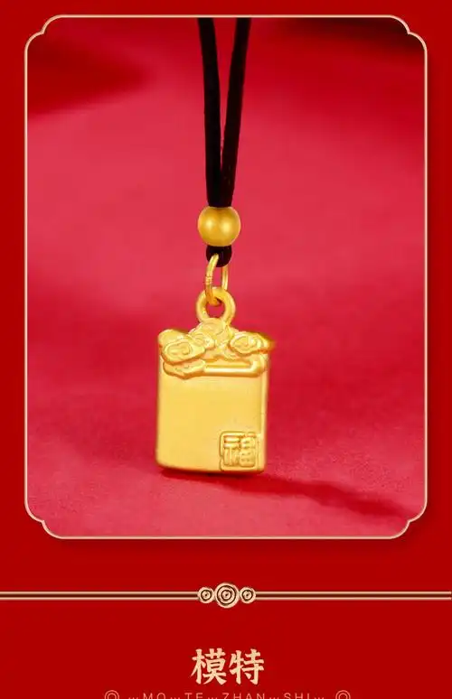 福韵瑞足金999平安无事牌吊坠3d硬金转运珠挂坠黄金编绳项