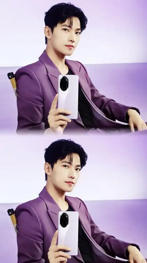 代言人杨洋#在拍照新搭紫的照片中与荣耀100系列手机的莫奈紫配色深深