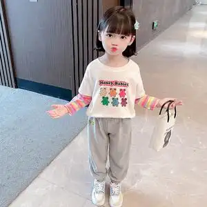童装代发女童休闲长袖套装 春秋装新款卡通字母女宝宝衣[1-4岁]