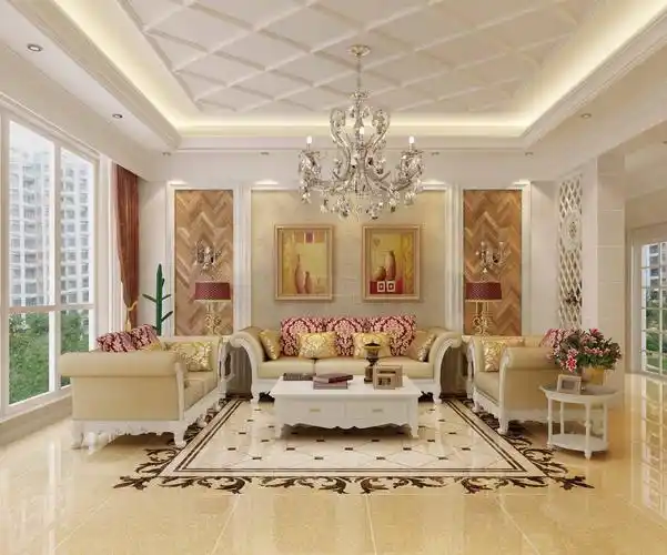 现代欧式客厅地板瓷砖拼花造型图片_装信通网效果图