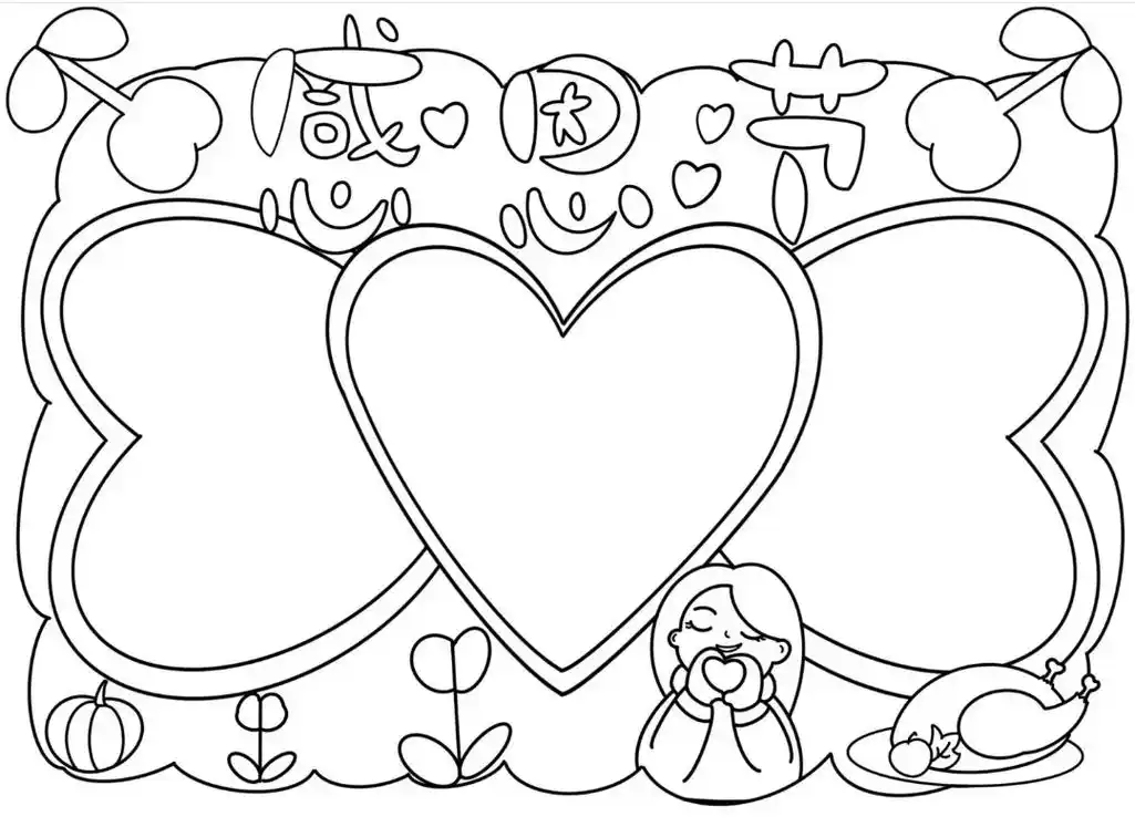 创作灵感 感恩手抄报简单模板线稿可打印 - 抖音