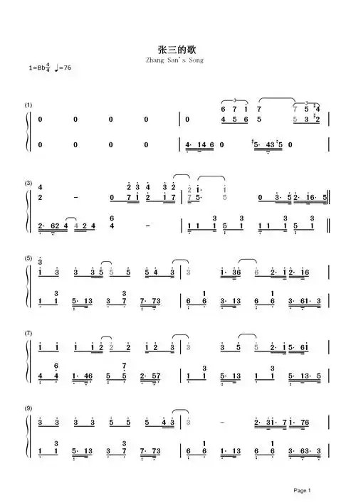 《张三的歌》齐秦初级版 ( 编谱) 歌谱简谱网