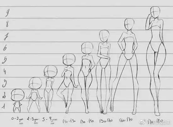 漫画中不同头身比例的身体绘制