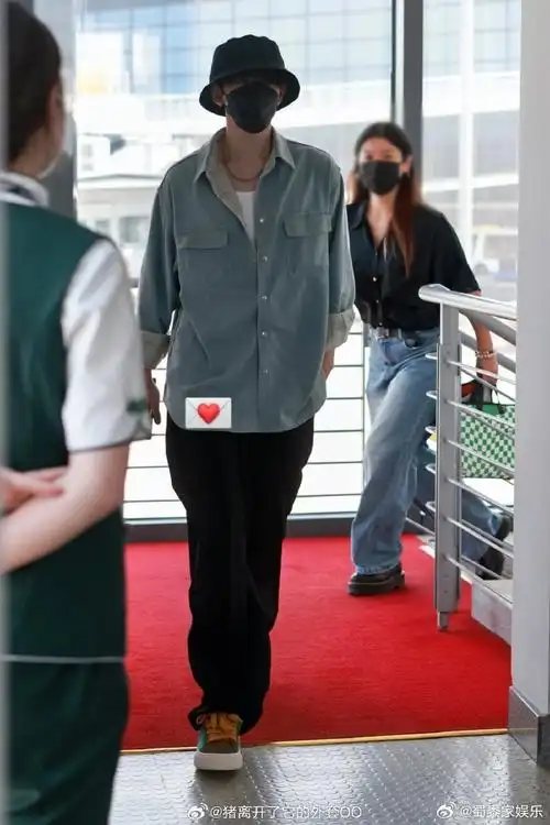 邓为宁波机场照##邓为蓝色牛仔外套