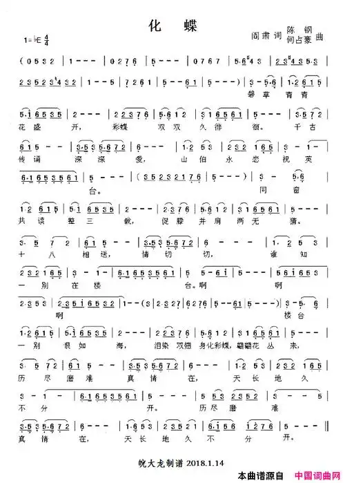 化蝶简谱-黑鸭子组合演唱-阎肃/陈刚,何占豪词曲1