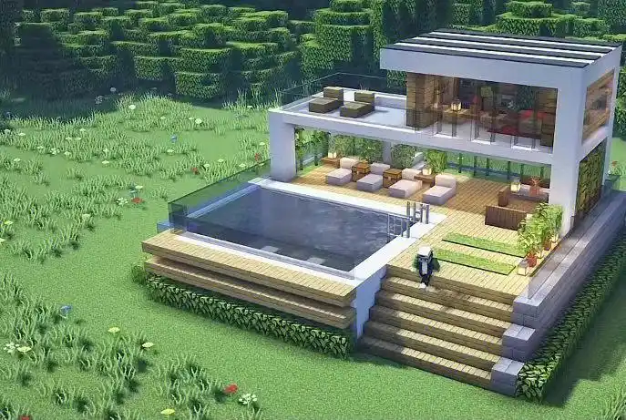 简单的三层小别墅,稍作修改也适用于沙漠地图#我的世界 #我的世界