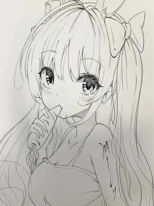铅笔画的动漫素描少女,元气满满,每个人物都很有气质!