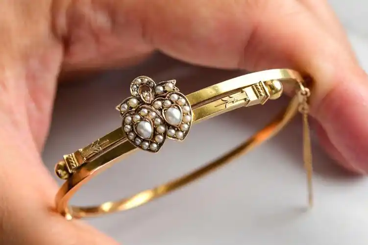 维多利亚时代双心黄金珍珠手镯78