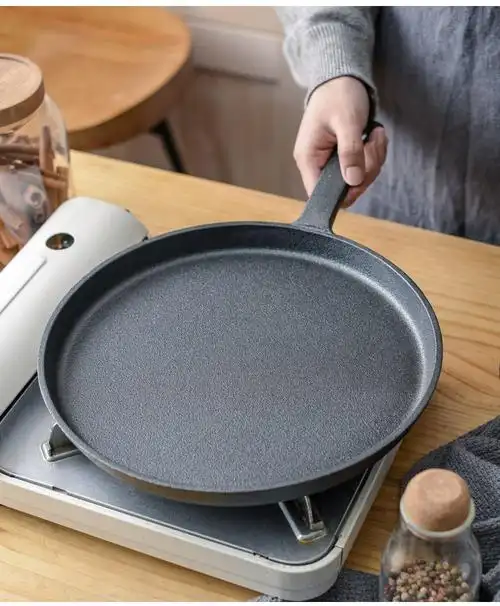 铸铁烙饼锅家用山东杂粮煎饼鏊子手抓饼锅加厚平底锅无涂层不粘锅口径