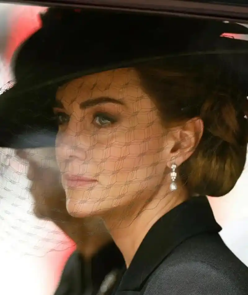 英女王葬礼上,凯特王妃佩戴着女王的四层珍珠项链和珍珠耳环,乔 - 抖