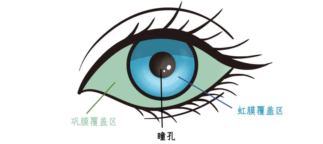 再来个正面示意图更好理解:虹膜:决定不同人种眼睛颜色差异的部分