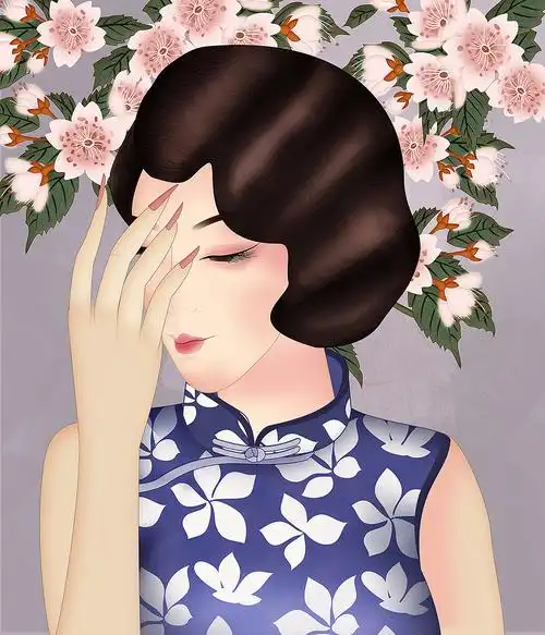 复古旗袍精致手绘人物插画