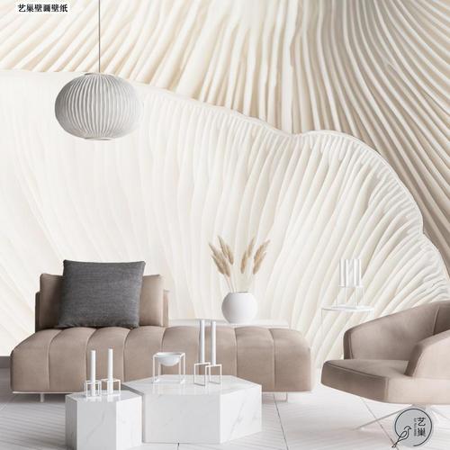 定制北欧线条蘑菇立体图形壁纸网红背景墙沙发卧室现代墙纸壁