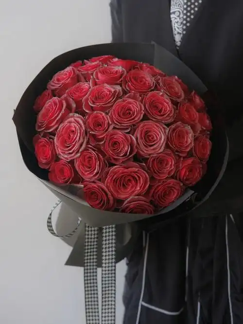 情人节39枝红玫瑰花束简约圆形包装花束