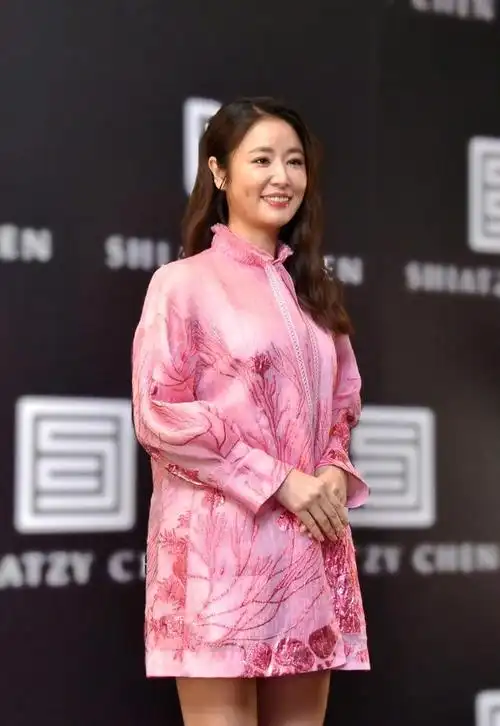 林心如一身粉色短裙也难掩老态膝盖也透露出年过半百了