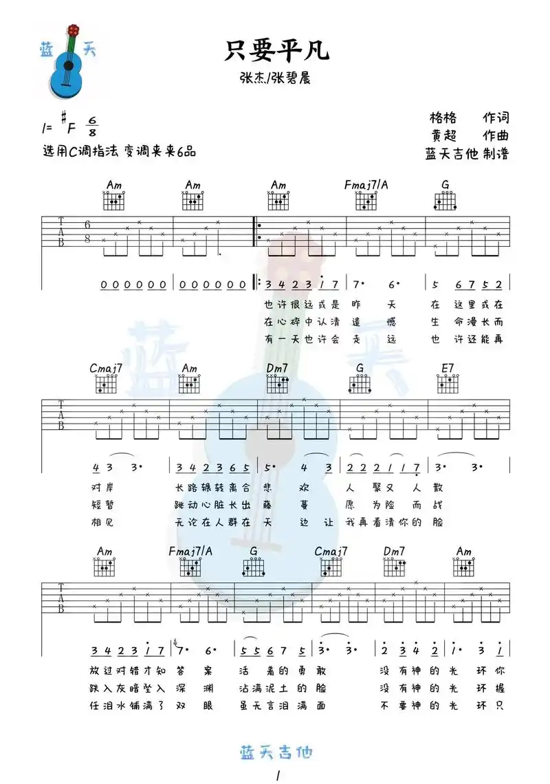 只要平凡 吉他谱.线上一对一课程招生中 #零基础学吉他 #吉