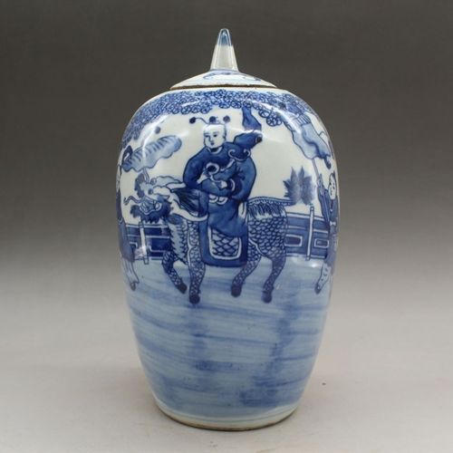 清乾隆青花麒麟送子盖罐冬瓜瓷器古董复古摆件收藏青花瓷家居摆设