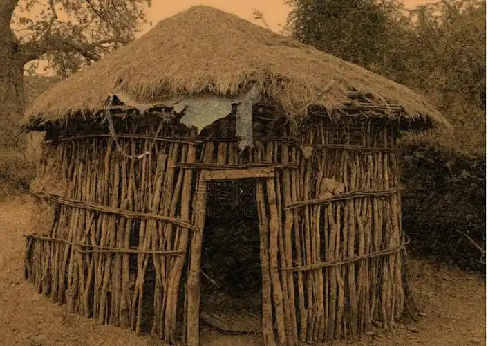下山溪村居民住的茅草屋