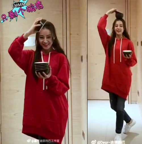 迪丽热巴这次真的皮了!穿着红色卫衣在家耍杂技,卖萌搞笑挺在行