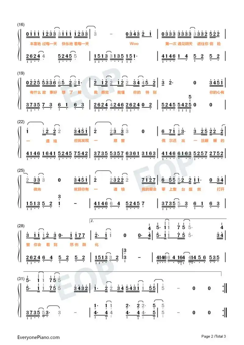 《心墙》钢琴简谱双手