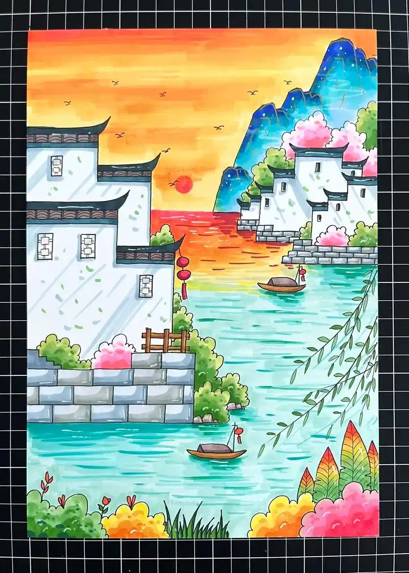 忆江南古诗配画手抄报小报绘画一等奖.#忆江南#忆江南古诗配画