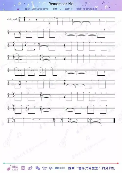 rememberme尤克里里谱弹唱谱指弹谱寻梦环游记插曲