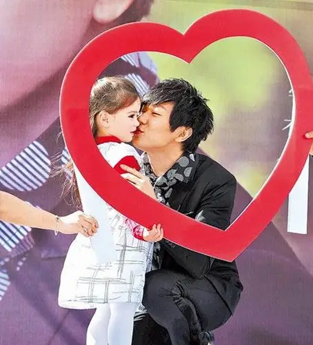 林俊杰(右)昨与混血小女孩为活动开吻.图片来源:台湾《苹果日报》