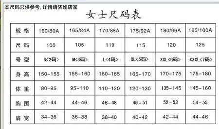 求女装上衣身高 体重尺码表