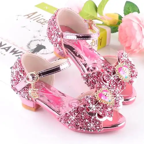 幼儿园宝宝公主鞋夏天女孩凉鞋爱莎儿童高跟鞋新款水晶鞋女童凉鞋