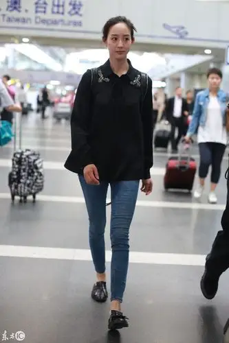 张钧甯穿黑色衬衫搭配蓝色牛仔裤现身机场,素颜出镜依旧很美!