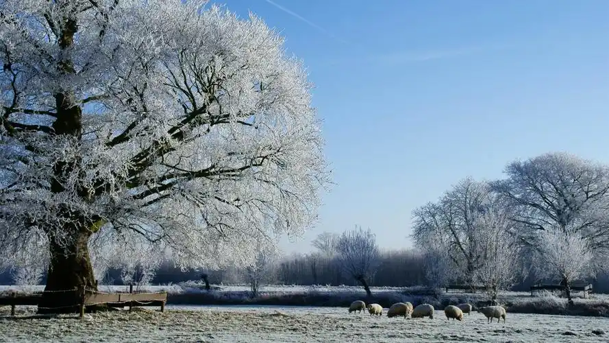 沿kromme rijn河-冬季雪景主题壁纸