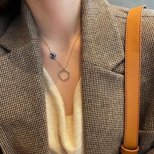 轻奢小众韩国网红棋盘格项链女秋冬小众长款毛衣项链2021年新款潮