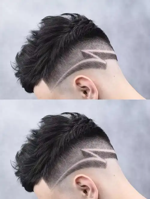 男生短发侧面刻痕闪电图案发型 教你雕刻男生刻痕发式剪法赏析
