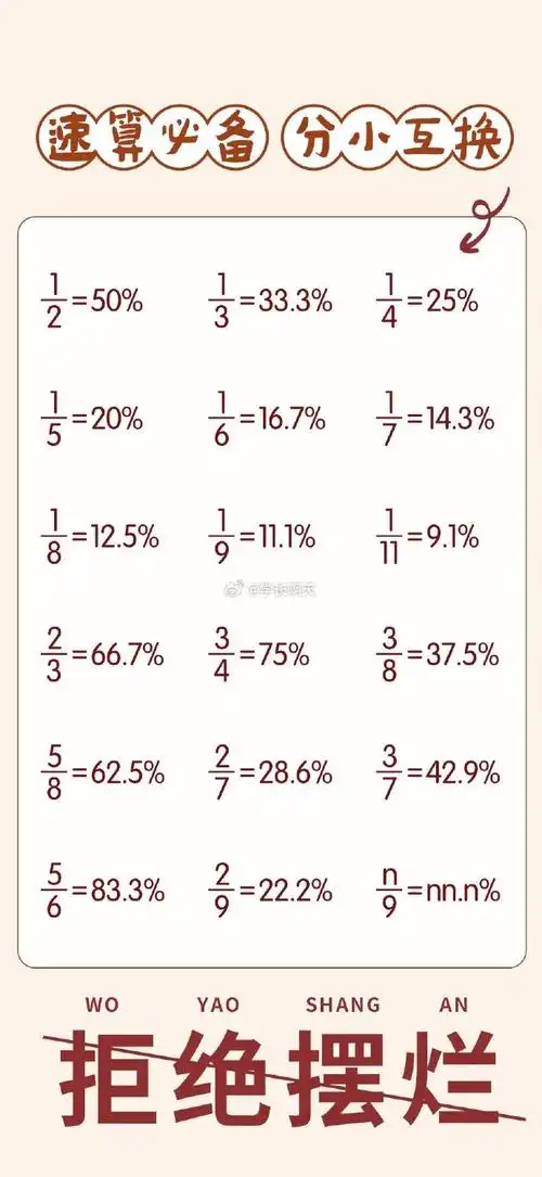 分数百分数转化表