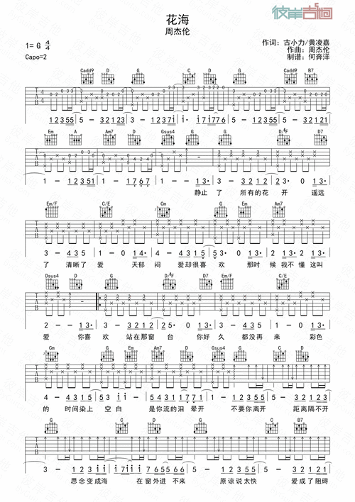 花海吉他谱_周杰伦_g调指弹 - 吉他世界