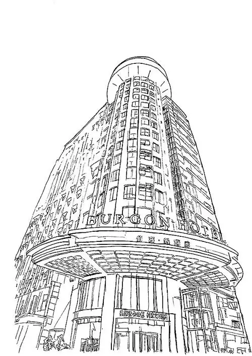 漂亮的大厦图片_手绘建筑中服大厦插画