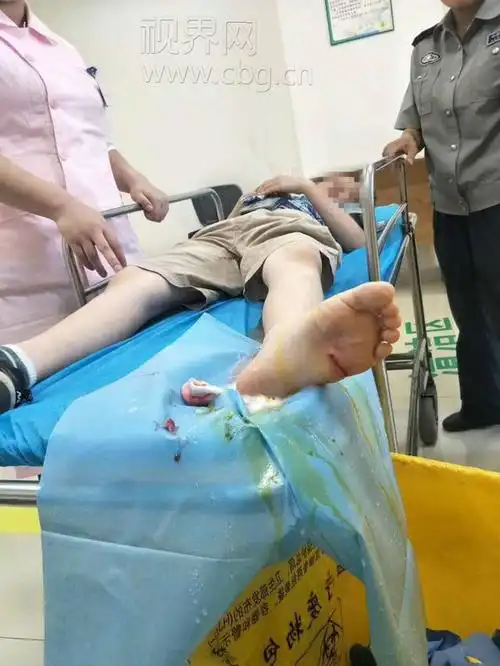 8厘米铁钉扎伤小孩左脚 交巡警紧急护送及时就医