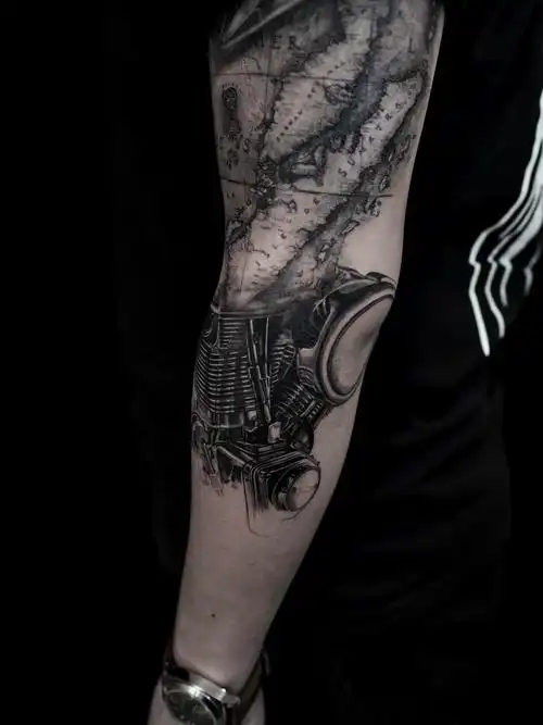 机车花臂拼接_纹身图案手稿图片_k.long的纹身作品集