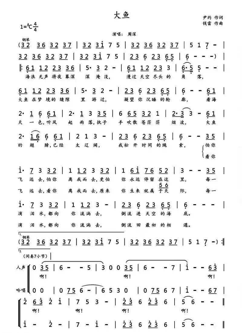 竹笛版大鱼简谱来喽