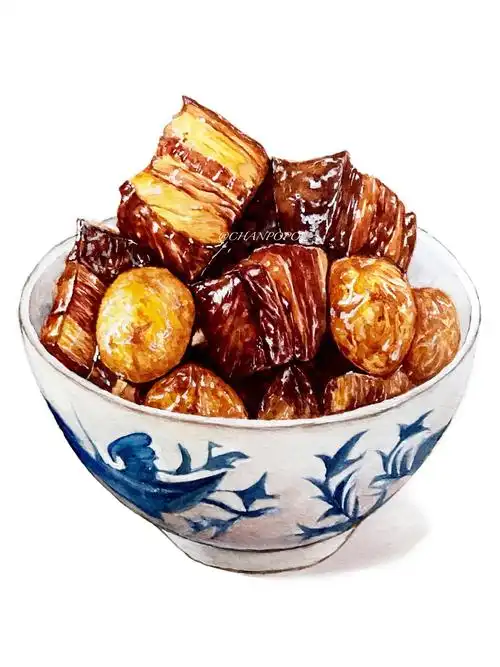 【小食刻】水彩 手绘 绘画 插画 原创 美食 红烧肉