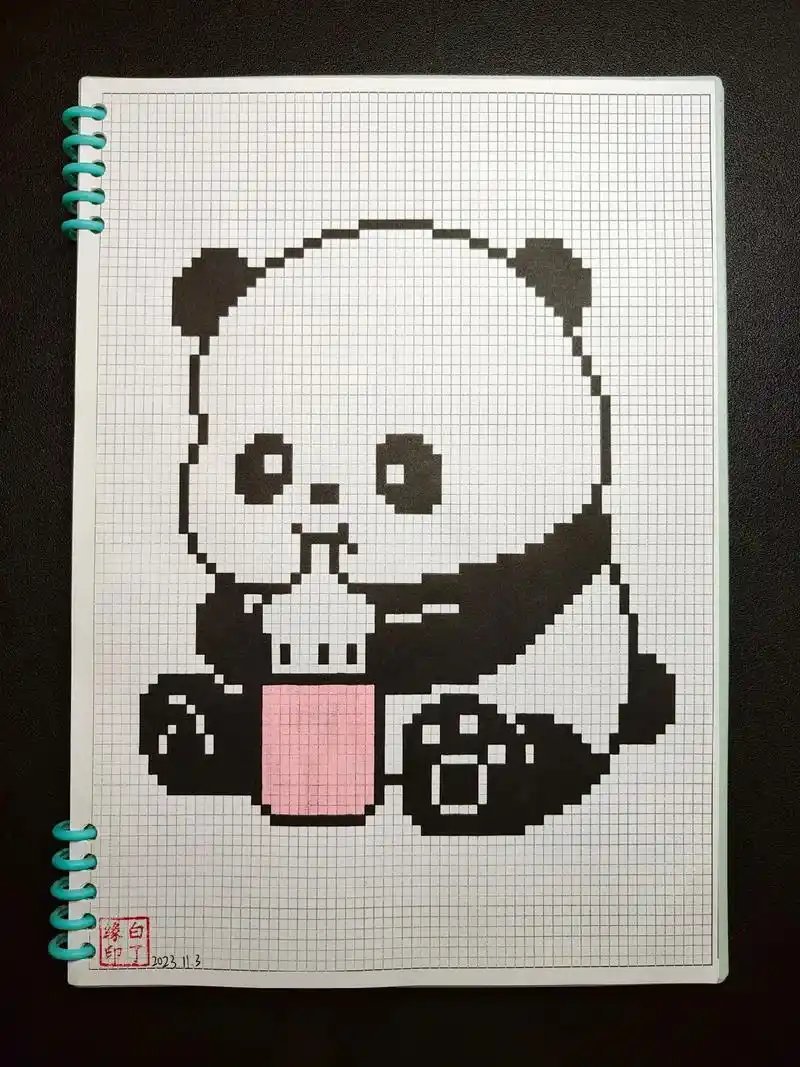 像素画 熊猫宝宝临摹非原创0299风中的雨翼 a4网格本 - 抖音