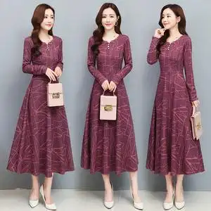 女装长裙京东购物商城官网高级感毛呢连衣裙春秋加厚羊毛打底裙子