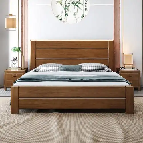 实木床1.8米中式双人轻奢皮床简约现代主卧1.5米新 - 抖音
