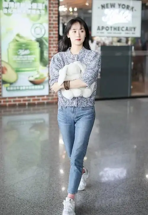 袁冰妍现身机场穿九分裤搭毛衣显腿长太怕冷不露脚踝穿长袜