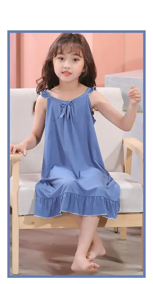 3-14岁小女孩夏天穿的 儿童睡裙冰丝女夏季薄款中大童无袖吊带网红