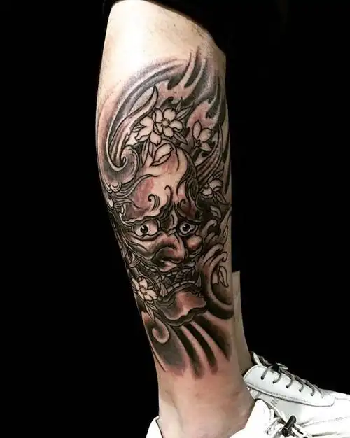 小腿外侧般若纹身图片_成品腿部传统鬼神般若纹身图案