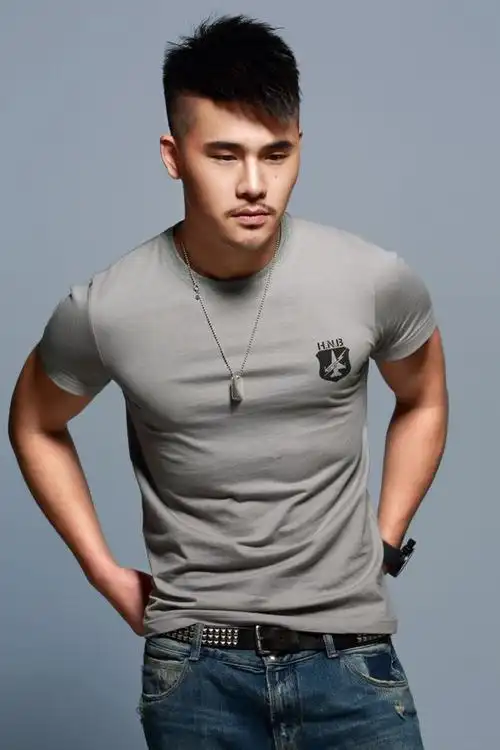 hansbenny2014新款男士圆领短袖纯棉t恤修身t恤休闲运动假日34t恤