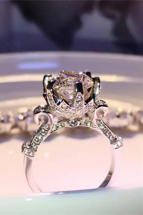 饰品 奢华版群镶 豪华圆形钻戒电镀白金钻石戒指求婚结婚裸钻钻戒