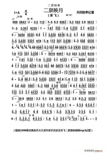 二泉映月(二胡独奏 演奏版) 宋飞 歌谱简谱网